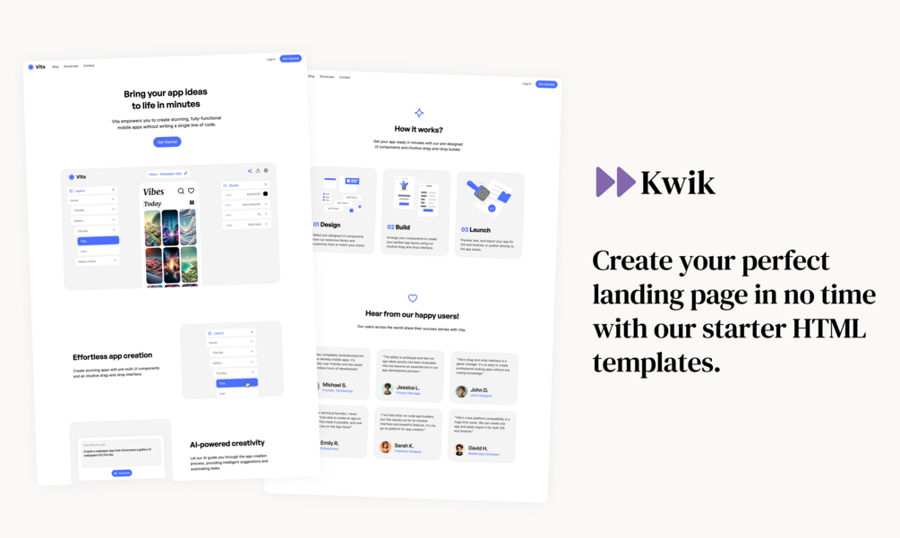 Download this free sample of the minimal HTML template from the Kwik starter pack. It's clean, responsive, and perfect for quick projects or as a base for customization. Get a taste of what the full version offers. Unlock the full version at kwik.website to get the rest of the pack which includes: